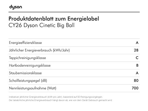Dyson Cinetic Big Ball AnimalPro 2, 700 W, A, 28 kWh, 150 W, A cilindro, Senza sacchetto Dyson Cinetic Big Ball AnimalPro 2. Massima potenza in entrata: 700 W, Classe efficienza energetica: A, Consumo energetico annuo: 28 kWh. Tipo: A cilindro, Tipo di contenitore della polvere: Senza sacchetto, Capacita’ del contenitore: 0,8 L. Sistema di filtraggio dell’aspirapolvere: EPA, Metodo di separazione dello sporco: Ciclonico, Tipo di pulizia: Secco. Lunghezza cavo: 6,6 m, Controllo dell’energia: Elettronico. Peso: 8,03 kg, Larghezza: 349 mm, Profondita’: 397 mm Tecnologia Dyson Cinetic?nGli aspirapolvere Dyson Cinetic? hanno 36 punte oscillanti per separare la polvere microscopica che puo’ ostruire gli altri apparecchi. In questo modo, non ci sono filtri da sostituire e la potenza di aspirazione rimane sempre costante.nnL?unico aspirapolvere che si raddrizza da solo in caso di ribaltamento.nGli aspirapolvere tradizionali cadono e rimangono a terra. Solo l’aspirapolvere a cilindro Dyson Big Ball si raddrizza.nnSvuotamento igienico del contenitore con un unico gestonEspelle automaticamente lo sporco intrappolato con un solo ?clic?. Pertanto, non c?e’ nessun contatto con lo sporco.nnContenitore capientenIl contenitore trasparente, ampio e capiente, cattura la polvere e lo sporco durante l?aspirazione.nn25% in meno di rumore generatonRipensato a livello acustico per ridurre il rumore e migliorare la qualita’ sonora.nnNessun filtro da lavare o sostituire. Nessun sacchetto da comprare.nLa tecnologia Dyson Cinetic? separa la polvere in modo talmente efficiente che, a differenza degli altri aspirapolvere, non sono necessari filtri da lavare o sostituire. E dal momento che non servono nemmeno i sacchetti, non ci sono costi aggiuntivi da sostenere.nnAccessori a sgancio rapido.nSostituzione immediata degli accessori a seconda dei compiti di aspirazione.nnManico snodatonIl manico dell?asta ruota ora in tre direzioni, consentendo un movimento…