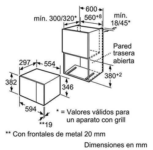 Bosch Microondas HMT75M664 Microondas sin marco Electrónico Ancho: 60cm Apertura: izquierda Reloj electrónico programable de paro de cocción Gourmet: 7 recetas almacenadas Memoria de cocción para 1 receta 5 niveles de potencia de microondas