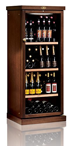 Cantina in legno refrigerata con controllo umidità, multitemperatura regolabile da +4 a +18° con almeno 10 gradi di differenza, capienza 116 bottiglie da 750ml, rivestimento legno pannellato color noce