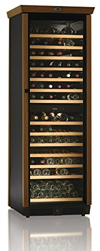 Libera installazione, a doppia temperatura, per il servizio di vini bianchi e rossi, perfetta per l’ambiente domestico, porta in doppio vetro, luce LED, 14 ripiani stoccaggio (removibili per tenere le bottiglie in piedi) , un ripiano intermedio per una capienza complessiva di 168 bottiglie da 750 ml: 88 nella zona superiore con una temperatura dai +5 ai +10 gradi e 80 nella zona inferiore per una temperatura dai +10 ai +18°C. Disponibile nel colore nero e a richiesta con modanatura porta in acciaio inox.
