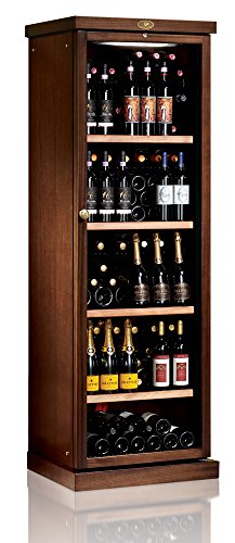 Cantina in legno refrigerata con controllo umidità, multitemperatura regolabile da +4 a +18° con almeno 10 gradi di differenza, capienza 138 bottiglie da 750ml, rivestimento legno pannellato color noce