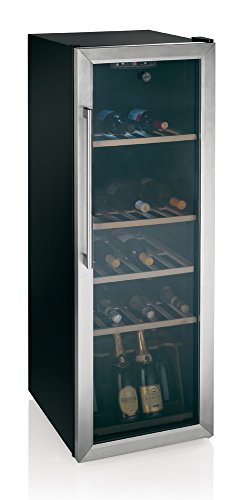 Caratteristiche: Codice: HWC 25360DL Classe Energetica: B Tecnologia del Freddo: Tradizionale Monozona Capacita’: 70 Bottiglie Vetro Doppio Strato, Fume’ con Potezione UV Ripiani in Legno Colore Mobile Nero e Cornice Porta Inox Controllo Elettronico Della Temperatura Luce Interna a LED Display Maniglia Esterna in Metallo Dimensioni (LxAxP): 490x1420x590mm