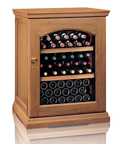 Rivestimento in legno massello finemente lavorato , porta con doppio vetro, un ripiano intermedio, e 2 ripiani stoccaggio per una capienza complessiva di 50 bottiglie da 750 ml. Luce interna e temperatura regolabile dai +4 ai +18 gradi. Disponibile nei colori ciliegio, noce, rovere e wenghe o a campione ( su richiesta )