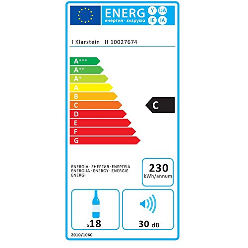 La cantinetta Vinesse di Klarstein, con una capacità di 43 litri per lo stoccaggio di 18 bottiglie di vino, è un minibar raffinato e compatto per la presentazione dei tuoi vini.