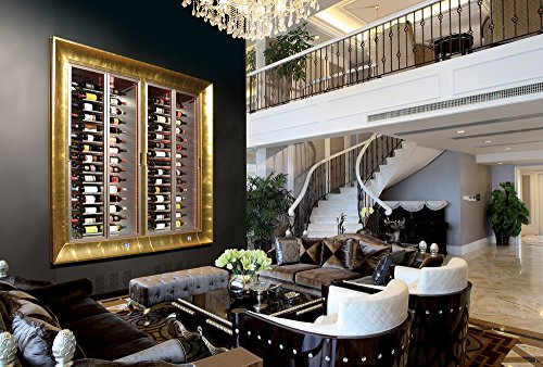 Due cantine refrigerate per l’esposizione elegante e raffinata di bottiglie coricate con colli esterni, programma di refrigerazione multiplo, estremamente adattabile alle proprie esigenze. Luci led, cornice oro sagomata, versione da incasso su cavalletti.