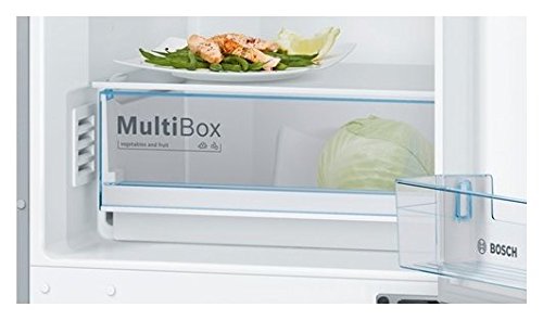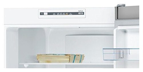 BOSCH Frigorifero Combinato KGN36NL30 Capacità 302 Classe A++ Colore Inox – Frigorifero combinato No Frost dotato di illuminazione interna e controllo elettronico a Led. Capacità totale frigorifero 302 Litri di cui 215 litri, capacità vano frigorifero e 87 litri capacità vano congelatore. Vano frigorifero composto da 4 ripiani in vetro infrangibile di cui 3 regolabili in altezza e Controporta con 4 balconcini. Vano congelatore composto da 3 cassetti. Classe energetica A++, Classe climatica SN-T. Cerniere a destra, reversibili. Dimensioni prodotto (L x A x P) 60 x 186 x 66 cm. Peso 64 Kg. Colore Inox. – Frigorifero combinato Modello KGN36NL30 Costruzione Libero posizionamento Colore Inox Capacità Capacità netta totale (l) 302 Capacità netta frigorifero (l) 215 Capacità netta congelatore (l) 87 Caratteristiche Tipo di controllo Elettronico a LED No Frost Si Illuminazione interna Si, a LED Cerniera porta A destra, reversibili Vano Frigorifero Ripiani 4 ripiani in vetro infrangibile di cui 3 regolabili in altezza Controporta con 4 balconciniverduriera Portauova Si Illuminazione interna LED Vano Congelatore Numero di stelle congelatore 4 Numero cassetti 3 trasparenti Dimensioni e Peso Dimensione del prodotto (H x L x P) in cm 186 x 60 x 66 cm Peso Netto (Kg) 64 Informazioni energetiche Classe di efficienza energetica A++ Classe climatica SN-T Consumo energetico annuo (Kw) 235 Autonomia di conservazione senza energia elettrica (h) 19 Capacità di congelamento (Kg/24ore) 11 Rumorosità (dbA) 42