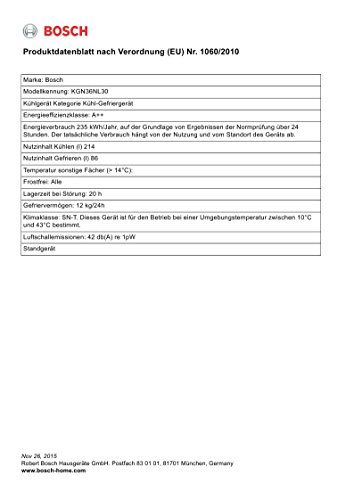 BOSCH KGN36NL30 COMB. A++ INOXLOOK L357 H186
