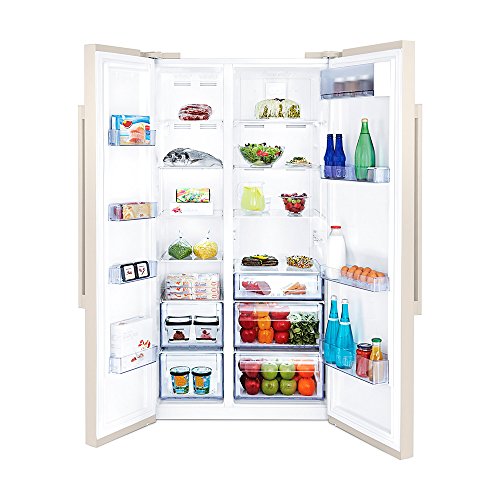 Beko frigorifero side by side a libera installazione GN 163120 B finitura sabbia da 91cmGN 163120 B8690842052293Caratteristiche: Famiglia: Side by Side Sistema di raffreddamento: Total No Frost Colore porte: Sabbia Marmorizzato Display: Si Classe energatica: A+ Gelataio (Macchina del gelato integrata): No Everfresh+ (Frutta e verdura fresca fino a 30 giorni): No Neofrost (Il total no frost che garantisce fino al 90% di umidita’): Si Ionizzatore (Previene la formazione di batteri e cattivi odori): No Dispenser acqua: No Minibar: No Volume utile scomparto frigorifero (l): 353 Volume utile scomparto freezer (l): 190 Rumorosita’ db(A) Re 1 pW: 43 Larghezza prodotto (cm): 91 Nel mondo degli elettrodomestici Beko funzionalità, eleganza e stile si fondono in piena armonia. Ideati per rispondere al meglio a ogni tipo di necessità, offrono un design accattivante, tecnologie innovative, consumi contenuti e rispettano l?ambiente.