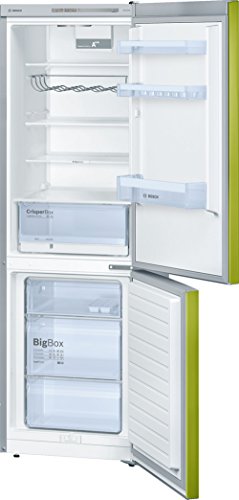 Bosch Frigorifero combinato da libero posizionamento KGV36VH32S Finitura verde lime da 60cm KGV36VH32S Bosch Frigorifero combinato da libero posizionamento KGV36VH32S Finitura verde lime da 60cm KGV36VH32S Frigorifero combinato, art KGV36VH32S . Caratteristiche: Classe di efficienza energetica A++ Dimensioni (hxlxp): 186 x 60 x 65 cm Ventola interna per freddo dinamico Capacità netta totale di 309 L Controllo elettronico a LED Tasto ?super? per congelamento intensivo Sbrinamento automatico Maniglie integrate nei fianchi della porta VANO FRIGORIFERO VitaFresh con controllo umidità: mantiene il cibo fresco più a lungo 4 ripiani in vetro infrangibile di cui 3 scorrevoli EasyShelf regolabili in altezza Portabottiglie Controporta con 1 balconcino grande e 2 piccoli Illuminazione interna a LED VANO CONGELATORE Freezer con sistema low frost 3 cassetti trasparenti Ripiani in vetro removibili Scarico acqua di sbrinamento facilitato Fiera di una tradizione secolare Bosch continua nel tempo a proporre elettrodomestici innovativi affidabili e accattivanti ma anche funzionali per le esigenze concrete della vita di tutti i giorni