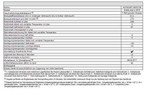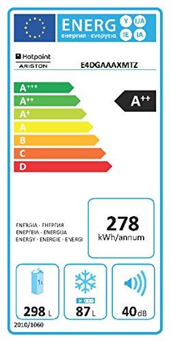A++, 468L, inox. Hotpoint-Ariston E4DG AAA X MTZ, Libera installazione, Acciaio inossidabile, Porta francese, 385L, 468L, SN, ST, T, No . Hotpoint-Ariston E4DG AAA X MTZ. Installazione: Libera installazione, Colore del prodotto: Acciaio inossidabile, Design: Porta francese. Capacità netta totale: 385L, Capacità lorda totale: 468L, Classe climatica: SN, ST, T, No. Capacità netta frigorifero: 298L, Capacità lorda frigorifero: 312L. Capacità netta congelatore: 87L, Capacità lorda congelatore: 156L, Tipologia: Fondo. Classe efficienza energetica: A++, Consumo energetico annuo: 278 kWh Il frigorifero 4 porte No Frost Hotpoint-Ariston E4DG AAA X MTZ è il primo frigorifero per congelare velocemente i cibi caldi preservandone la qualità. Il frigorifero 4 porte No Frost E4DG AAA X MTZ ha dimensioni di 195,5cm di altezza e 70cm di larghezza, con una capacità totale lorda di 468 litri. Garantisce un elevato risparmio energetico in classe energetica A++ e, grazie alla tecnologia No Frost Air Tech Evolution, raddoppia la vita dei tuoi cibi senza più sbrinare a mano impedendo la formazione di ghiaccio nel congelatore e di brina nel frigorifero. Scopri le caratteristiche esclusive del frigo 4 porte No Frost Hotpoint-Ariston E4DG AAA X MTZ e degli altri frigoriferi della gamma Hotpoint-Ariston Temperature Variable Zone Grazie alla Zona a Temperatura Variabile, lo scomparto congelatore dedicato può essere impostato a qualsiasi temperatura tra 0 °C e – 26° C creando le condizioni di conservazioni ideali e più adatte agli alimenti da conservare. Multi Temperature Zone L’innovativo Multi Temperature Zone del nuovo modello di 4 Porte trasforma il primo cassetto freezer nell’ambiente ideale dove preservare la freschezza e il gusto originale dei cibi anche durante il congelamento e lo scongelamento, grazie alla combinazione delle funzioni Hyper Freeze e Safe Defrost. Inoltre, la temperatura all’interno del vano viene regolata in base alle necessità di conservazione, variando da -18…