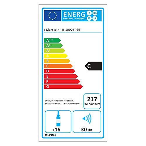 Adatta per la conservazione di 16 bottiglie standard, con la sua struttura nera e lo sportello leggermente oscurato, la cantinetta vino di Klarstein è il dispositivo ideale per la conservazione dei tuoi vini.