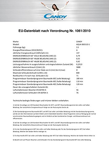 800 giri di centrifuga; display digitale; classe di efficienza energetica A; partenza ritardata fino a 24h