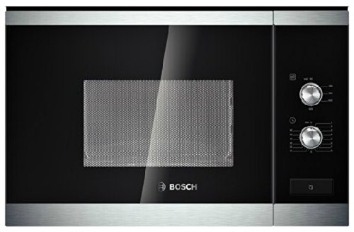 Bosch Horno Microondas Microondas sin marco Ancho 60cm Apertura izquierda Programador de tiempo de 60 minutos 5 niveles de potencia de microondas Plato giratorio de 25,5 cm de diámetro Interior: acero inoxidable Iluminación interior Capacidad: 20 litros. Reloj Peso: 18 Kg