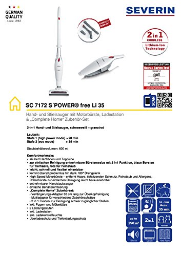 Scopa ricaricabile senza sacco 2 prodotti in 1 con rullo a spazzola rotante